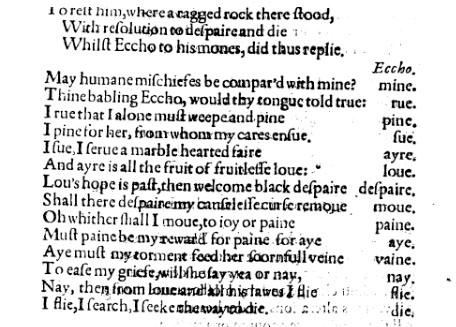 Q. On this image, there are words aligned on the first column text on the margin headed by "Eccho" appearing on the left hand page. The last word on each line is repeated on the margin.