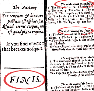 Q2: What should we do with the block of text that appars after the apparent end of the document (after the "FINIS")? Should it be a <DIV!>? Should the centered lines in italics be <HEAD>s? Should the rest be captured as <P>s?